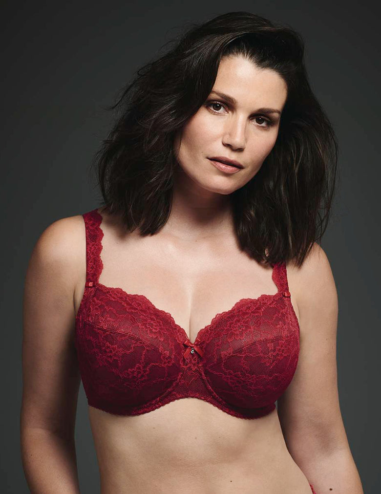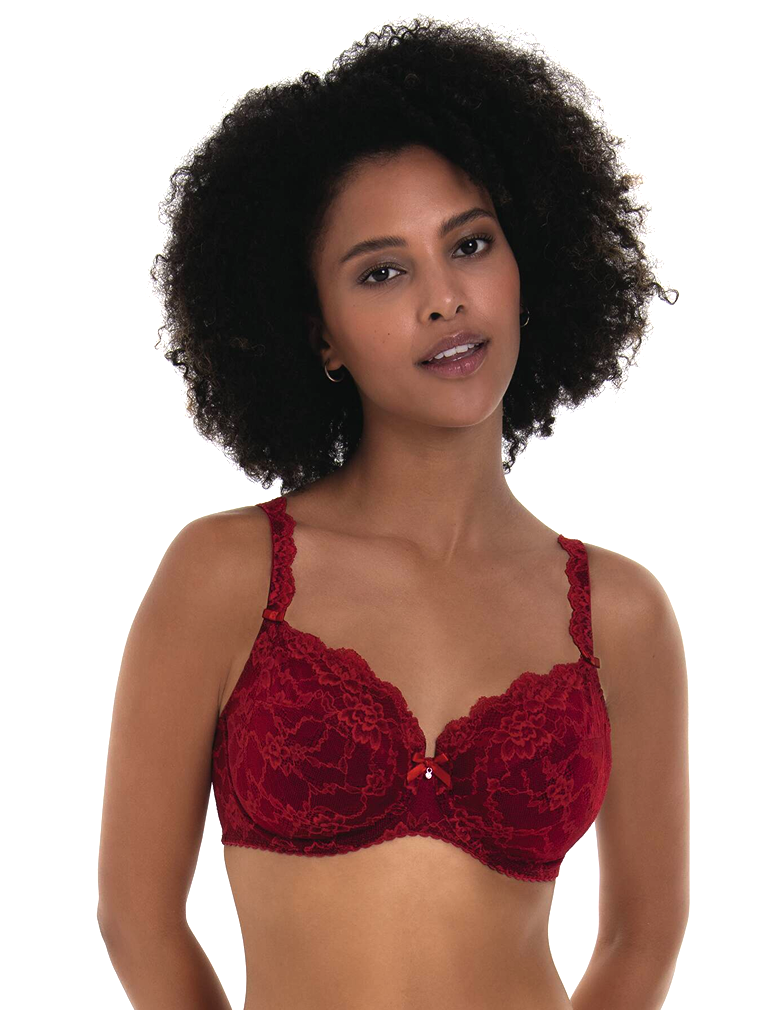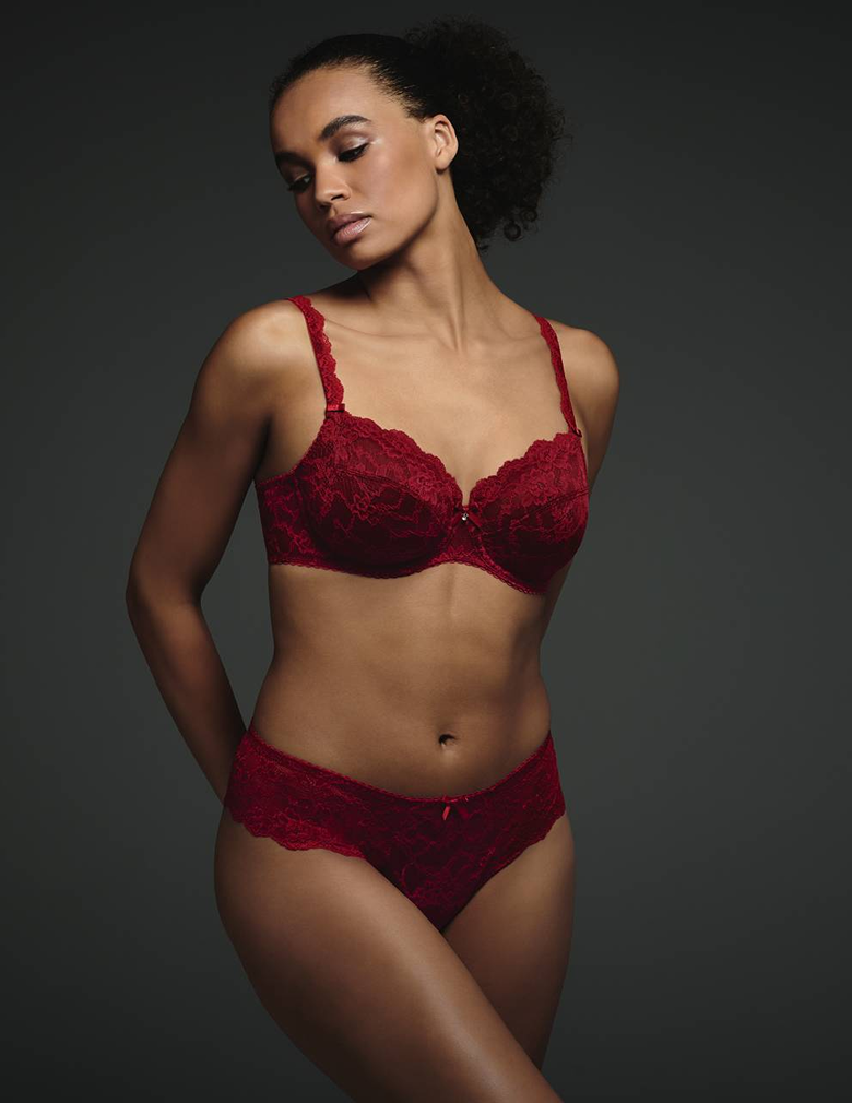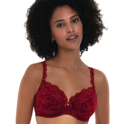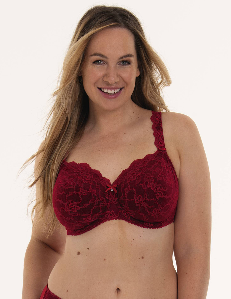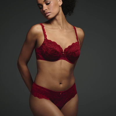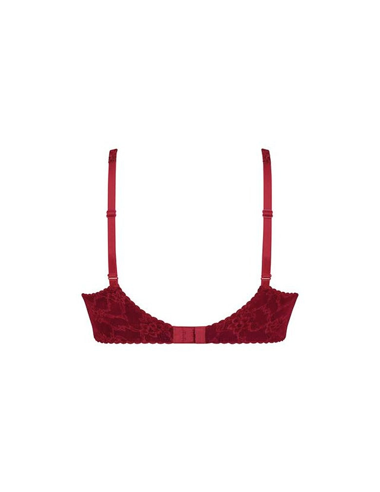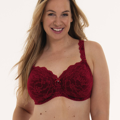 The Bobette underwire bra in Ruby is made of soft stretch lace in a floral design. The three-part cup is reinforced with fine tulle, framed by a soft décolleté band, and the lower cups and trim feature all-over lace. A small bow with a decorative pendant is the icing on the cake of this elegant bra.