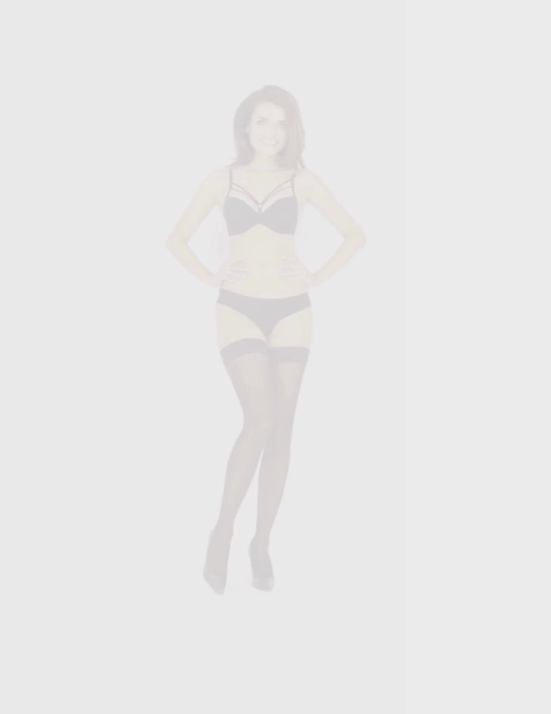 The Glamory 50503 Dotty 30 denier hold ups in Black boast a semi-sheer fabric and an all-over polka dot pattern, complemented by a satin thigh band. The band is backed with silicon to provide a secure fit, while the matt finish and added elasticity ensure a comfortable, perfect fit. Reinforced toes increase durability. These black hold ups with spots are available up to a size 4XL (UK dress size 34-36) and are specifically designed for a comfortable and flattering fit on larger thighs.