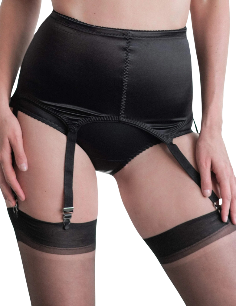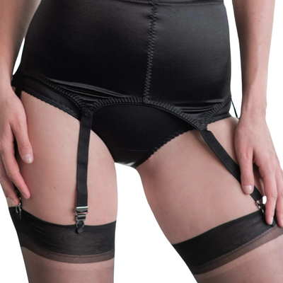 This tummy control garter belt is made of exclusive silky smooth fabric made of 80% nylon, 20% Spandex to stretch with you. It features four way stretch, six adjustable straps and metal garters, and soft, comfortable fabric against the skin.