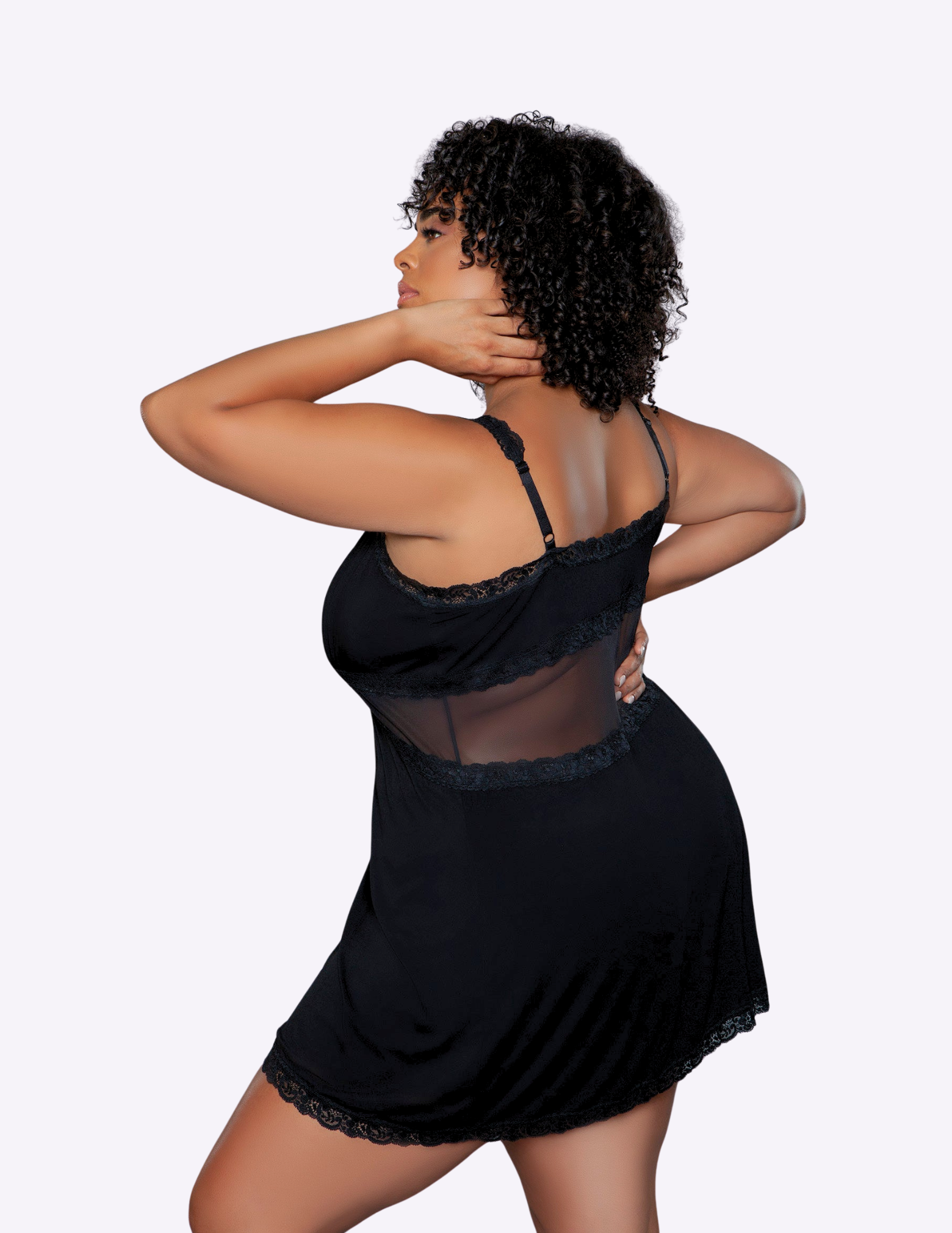 Step into a realm of subtle sophistication with this beautifully designed Alexi slip, featuring a delicate mesh design and adorned with floral lace trim detail. This slip combines the comfort of soft fabric with the allure of transparent mesh, creating a captivating contrast that's both chic and comfortable. Thong not included.