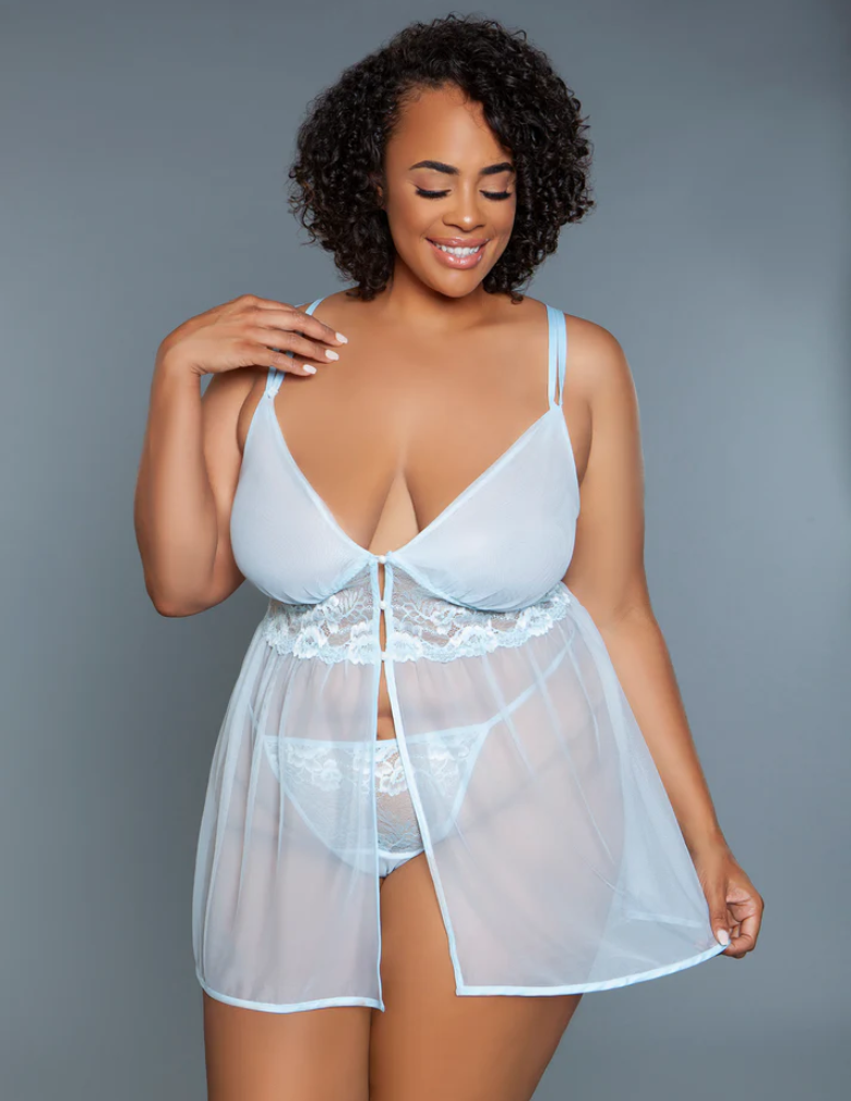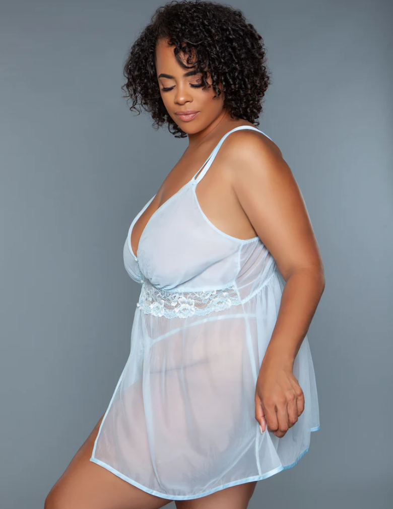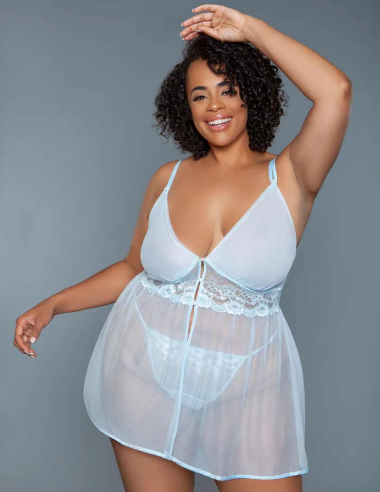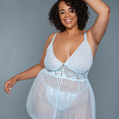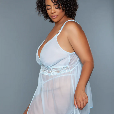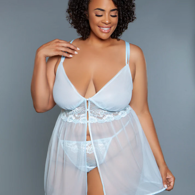 Envelope yourself in the sheer elegance of the "Whispering Lace and Mesh" babydoll set, this style epitomizes the essence of delicate allure. This flattering babydoll set is designed to float effortlessly over your curves, offering a tantalizing glimpse of what lies beneath while providing a comfortable, breathable fit.