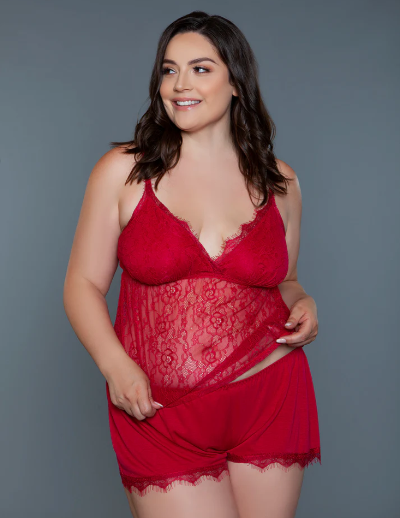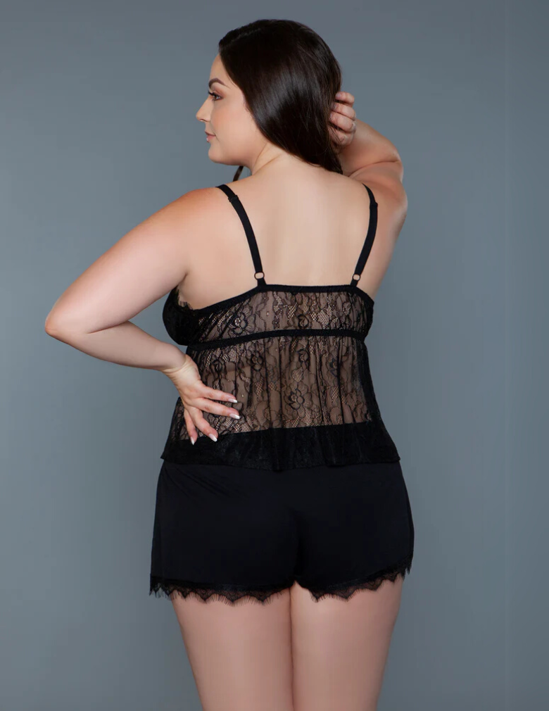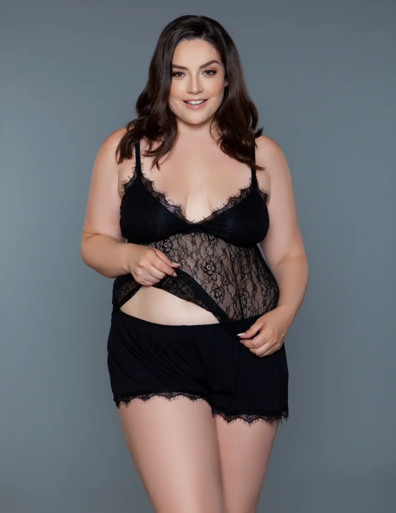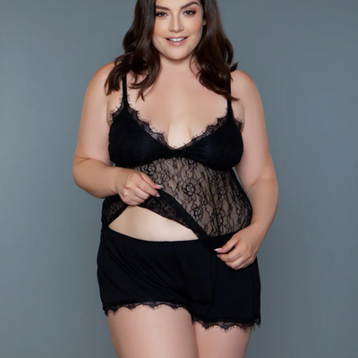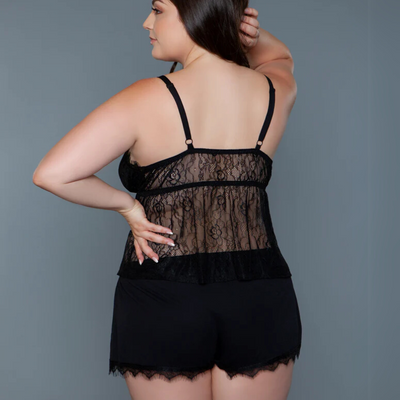 A beautifully curated ensemble that combines the timeless beauty of lace with the comfort and ease of a cami and short set. This exquisite pairing is designed to flatter and enchant, featuring soft, intricate lace that adorns both the cami and shorts, adding a layer of sophistication and allure.