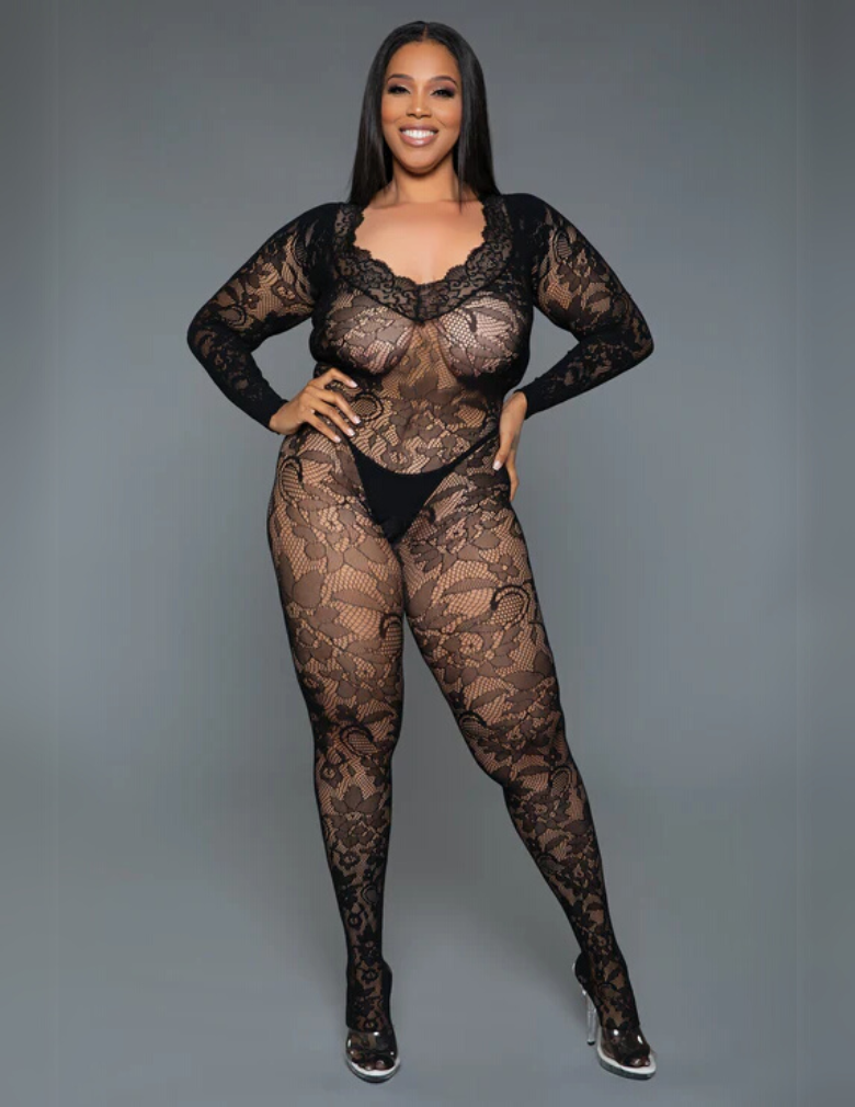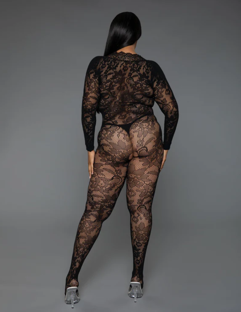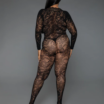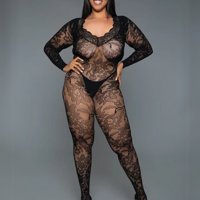 Turn heads with this striking Secret Poison Bodystocking catsuit. Designed with a luxurious lace texture, it features a scalloped deep V-neckline that exudes elegance and allure. The intricate floral pattern enhances its sophisticated appeal, while the fitted silhouette embraces your curves for a stunning, confident look.