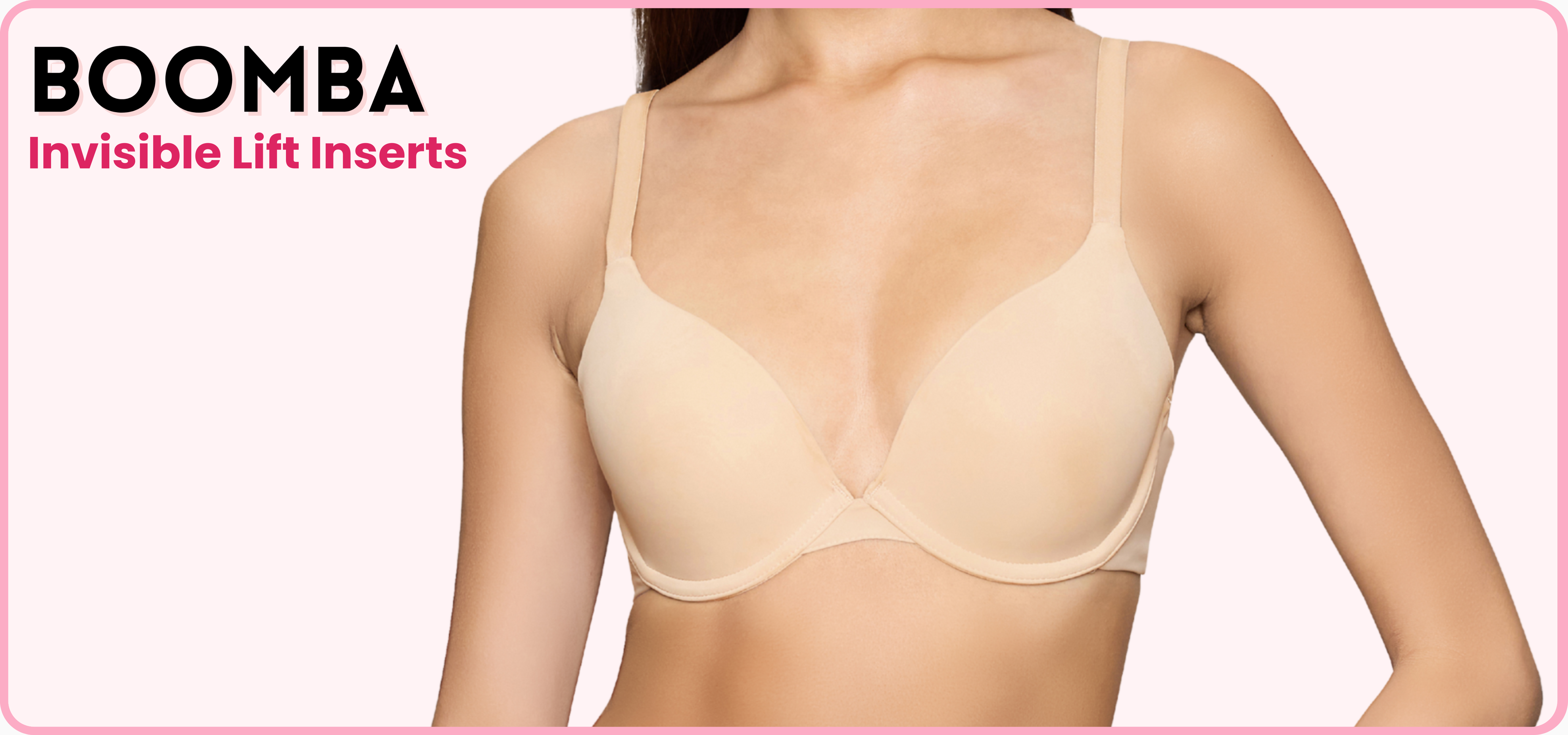 Unlike a sticky bra that is supported by the adhesive, BOOMBA inserts are supported by the clothing, they cannot stay up by themselves. It is crucial to wear them in tight, structured, and fitted tops.