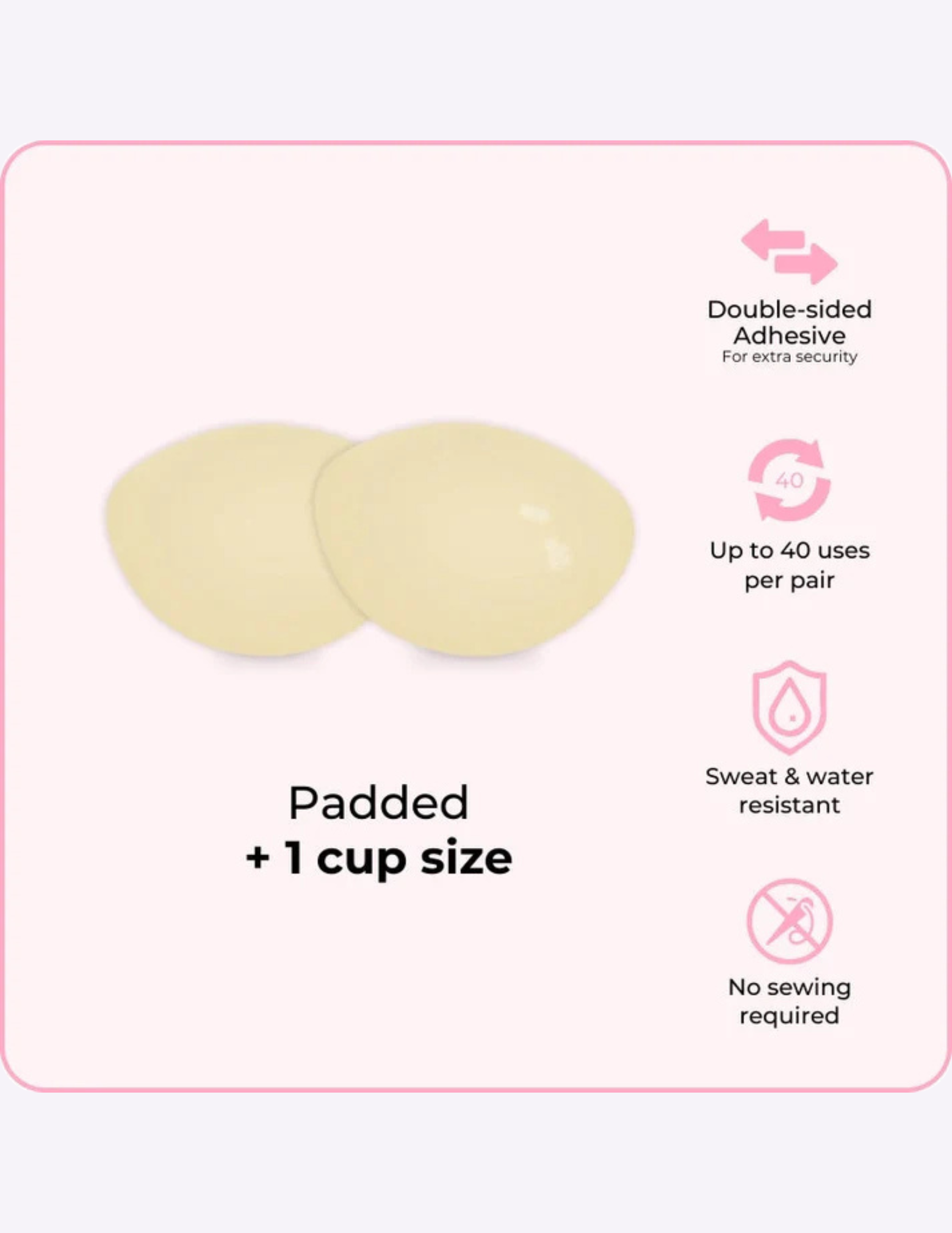 Perfect Boost Inserts are abalone-shaped inserts that increase your cup size by one cup. They give your bust a fuller look when you wear those plunging necklines and low-cut dresses.