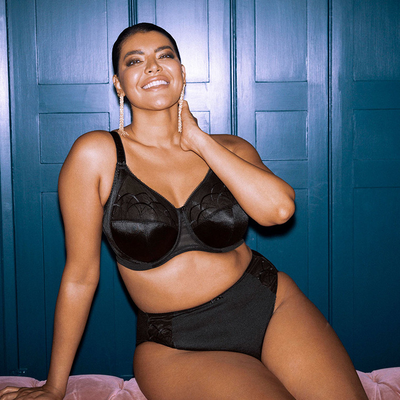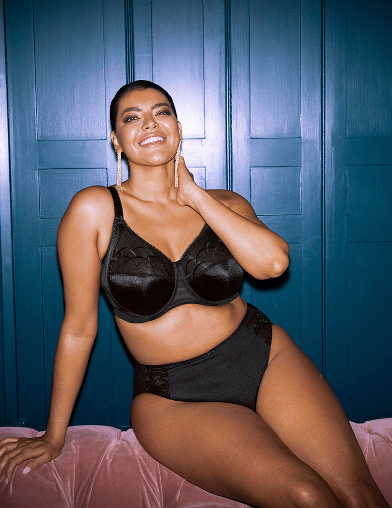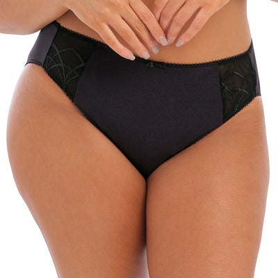 This full figure brief is made of shimmering, sophisticated knit that's embellished with gorgeous intersecting arcs embroidery on side panels. Classic, flattering mid-rise panty gives just enough coverage.
