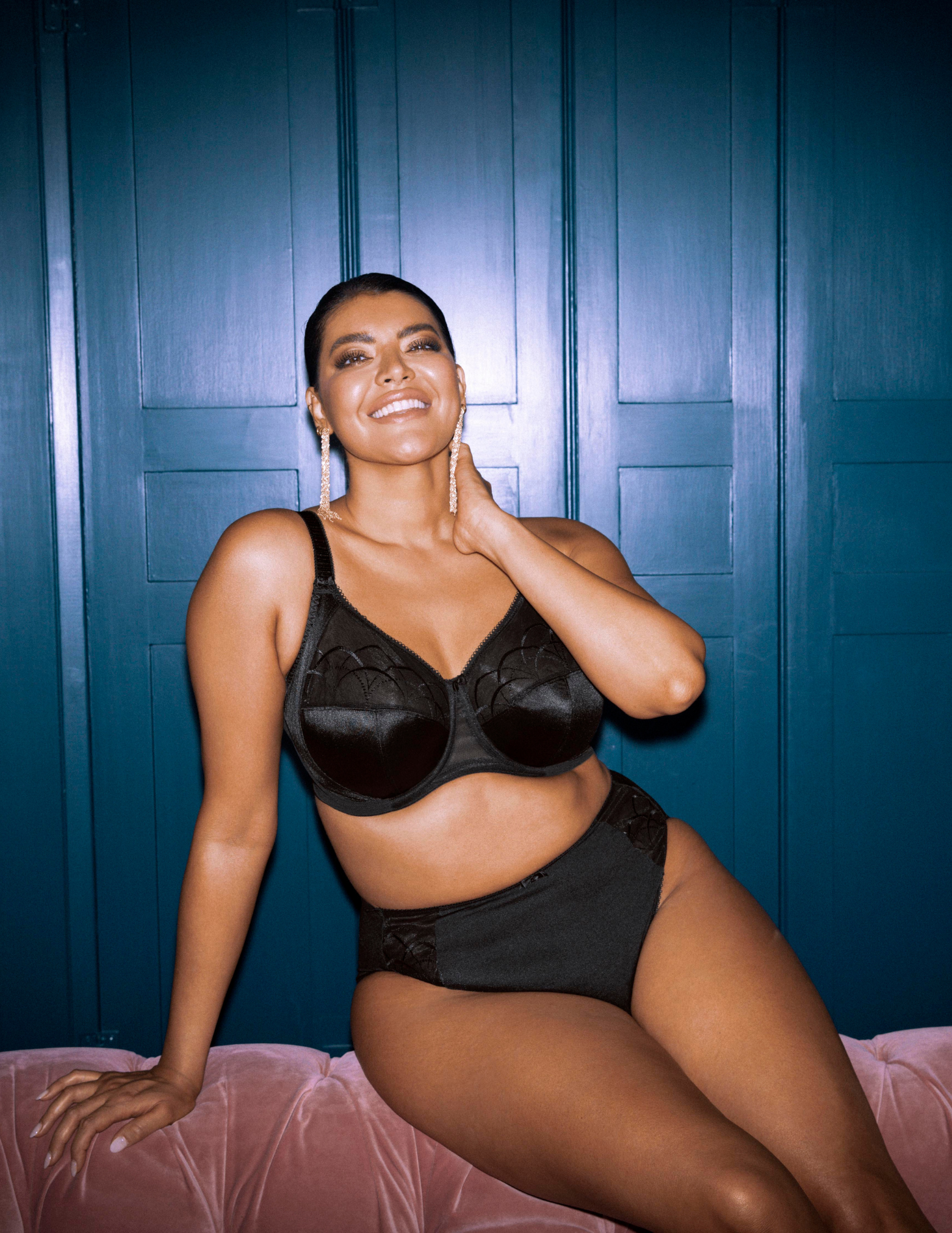 This full figure brief is made of shimmering, sophisticated knit that's embellished with gorgeous intersecting arcs embroidery on side panels. Classic, flattering mid-rise panty gives just enough coverage.