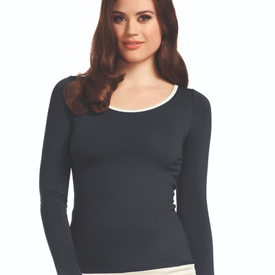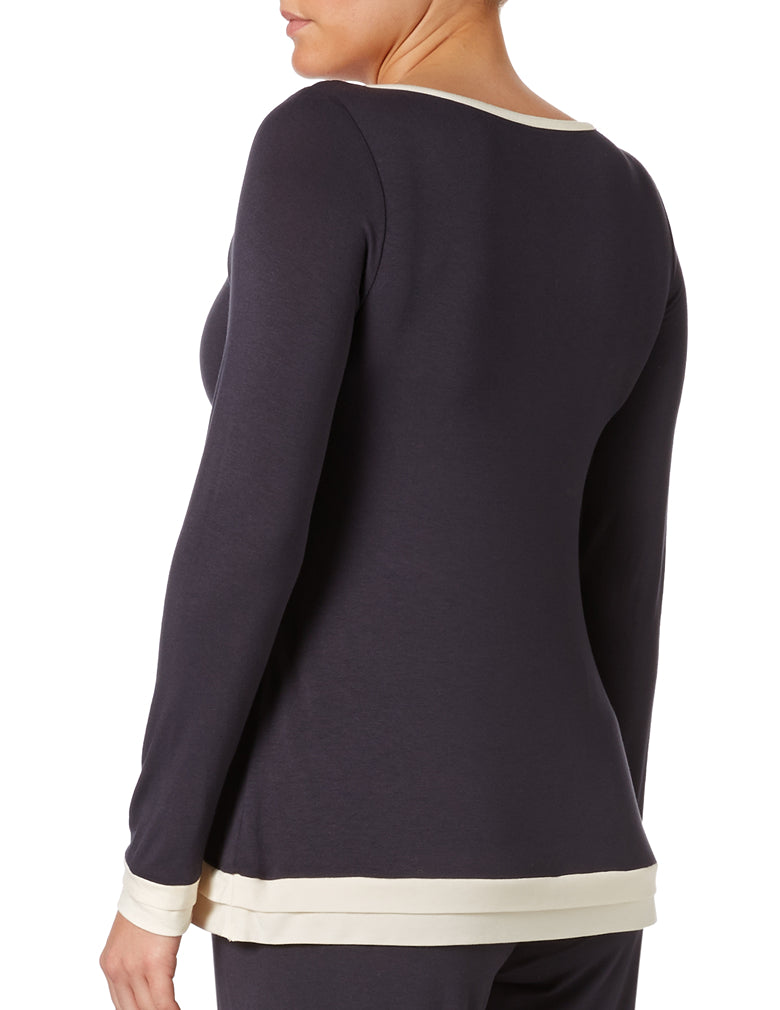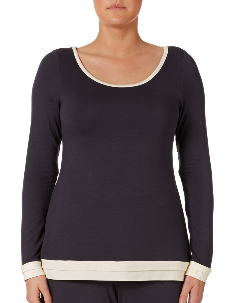 The Freya Sweet Dreams Long Sleeve Top in Charcoal offers built in secret support elasticated bra style around the bust area for added comfort and support. Decorated with a soft touch fabric in a Charcoal colour and finished with White trimmed neckline, hem and cuffs. Order this item by body size and cup size to get the perfect fit!