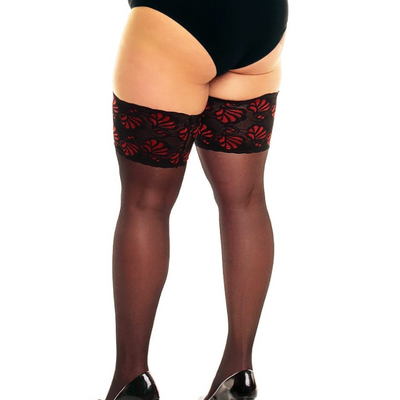 Deluxe 20 is huge favorite and true bestseller. Classic lace top satin-finish thigh high hold-ups with re-enforced toe and flat seams for comfort. Available in Black, Makeup as well as our exclusive two-tone Black and Red five-inch lace top and they’re simply beautiful! European Designed, European Quality, European Made.