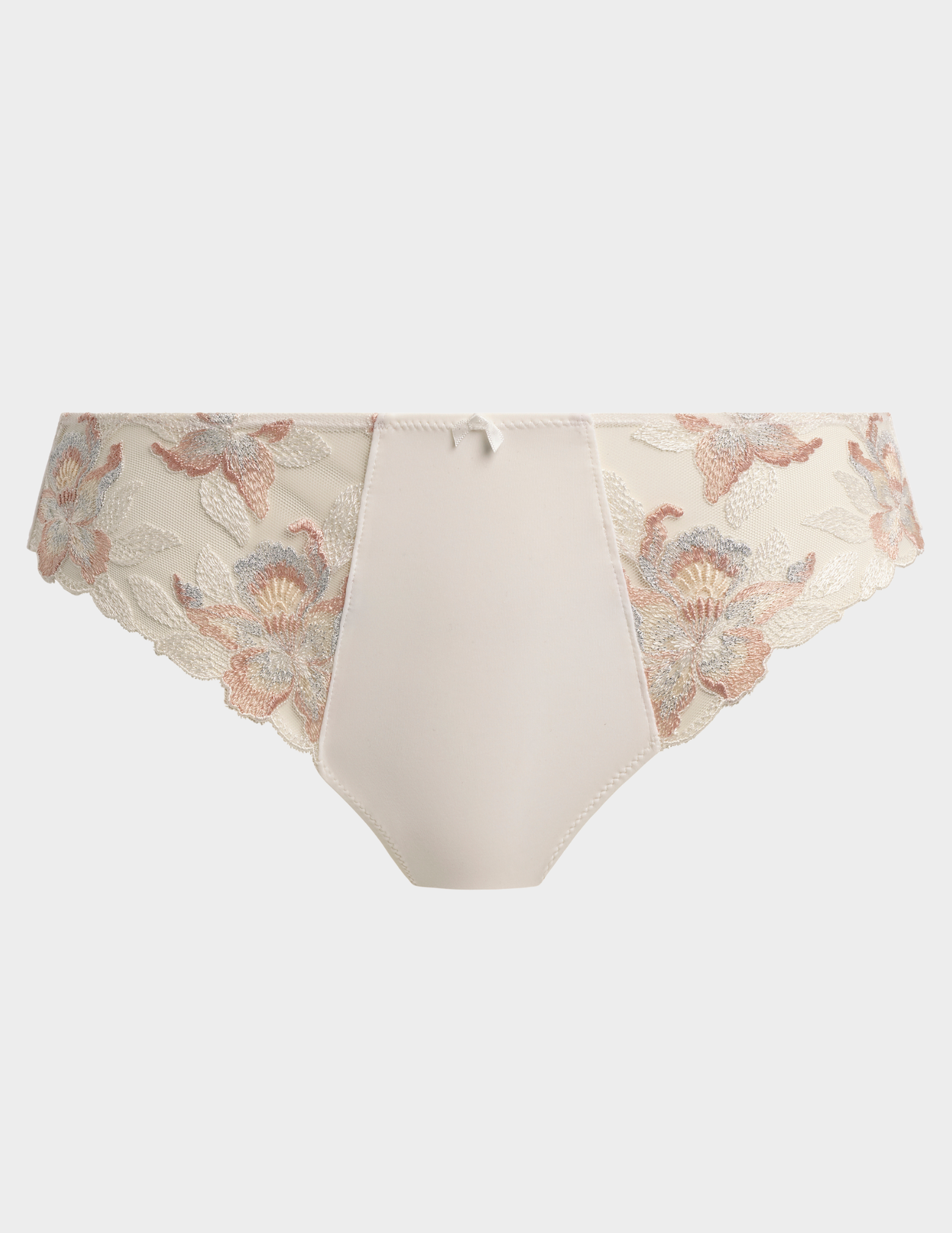 - Luxurious multi-tonal embroidery with lurex detail at the front leg
