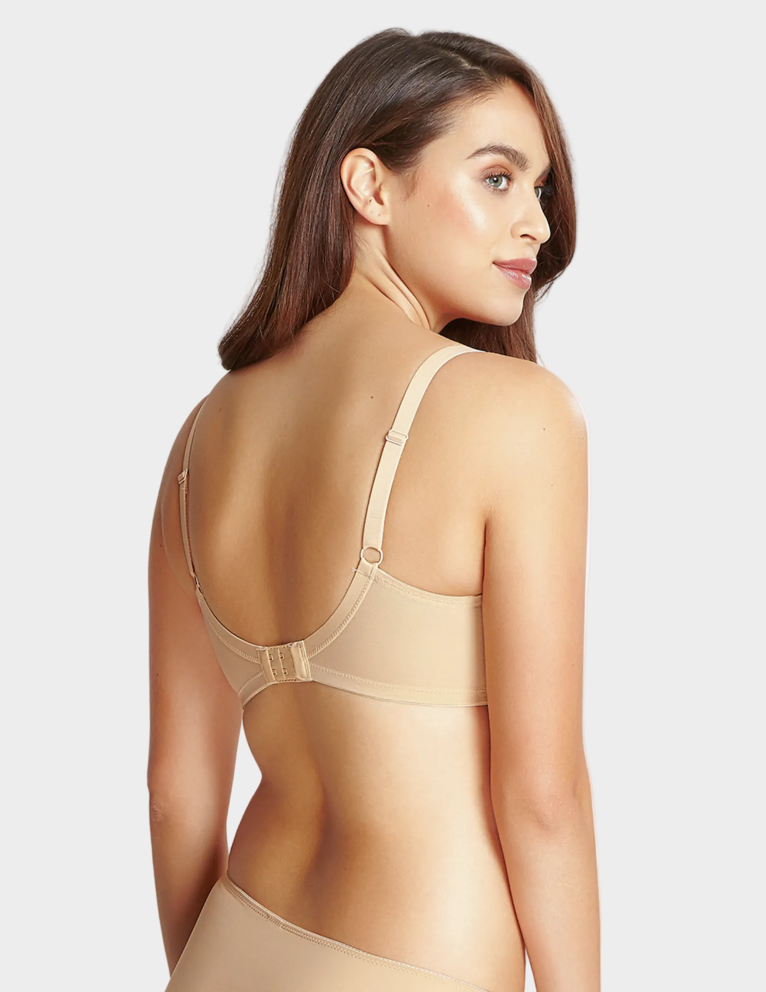 A firm Panache favourite, the Tango Balcony bra in Chai (nude) never disappoints when it comes to fit and support. With laminated cups to provide an uplifted and supportive fit and a rigid fabric to provide ultimate security. The Tango Balcony is finished off with Austrian designed leaf embroidery and a satin bow at the centre front for a simple look.
