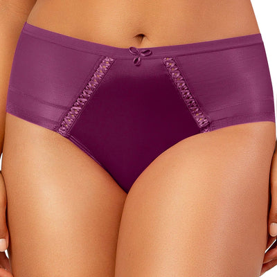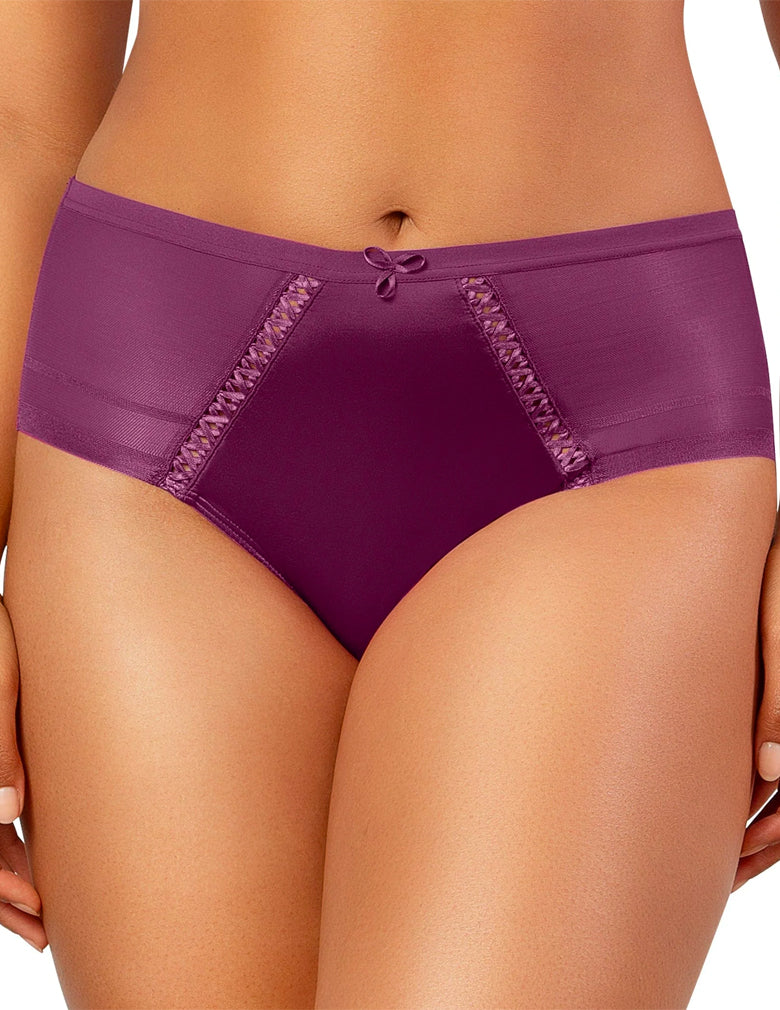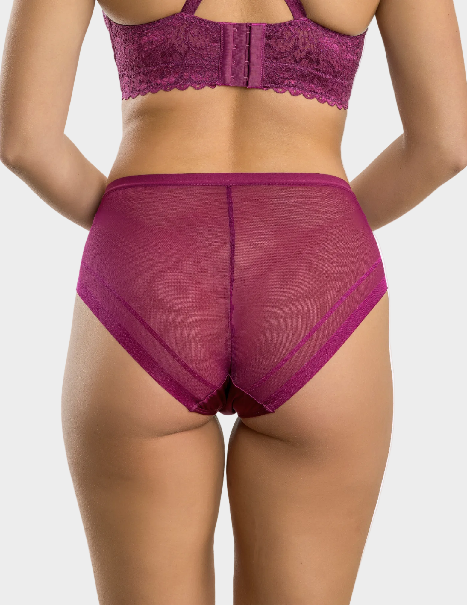Pairing perfectly with the Shea Bra this brief has sheer stripe mesh at the side and back that lays perfectly flat. This full coverage brief in Blackberry features modern decorative lacing at the front seam for a sexy feel.