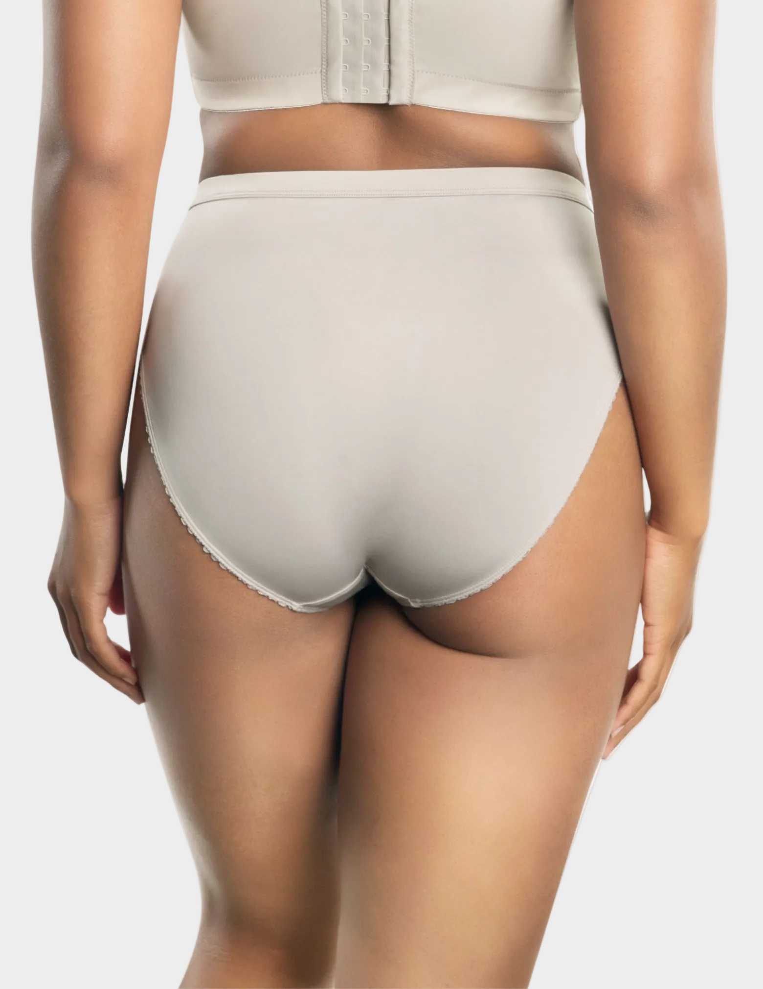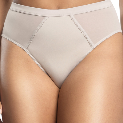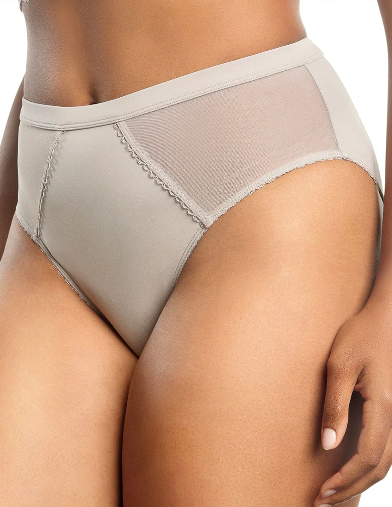These sexy high rise panties in Sandstone include a french cut with a pretty picot trim along the edge. The microfiber at center front and back keep you comfortable all day!