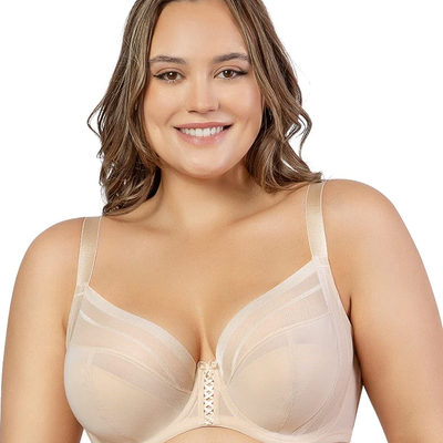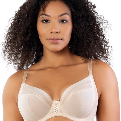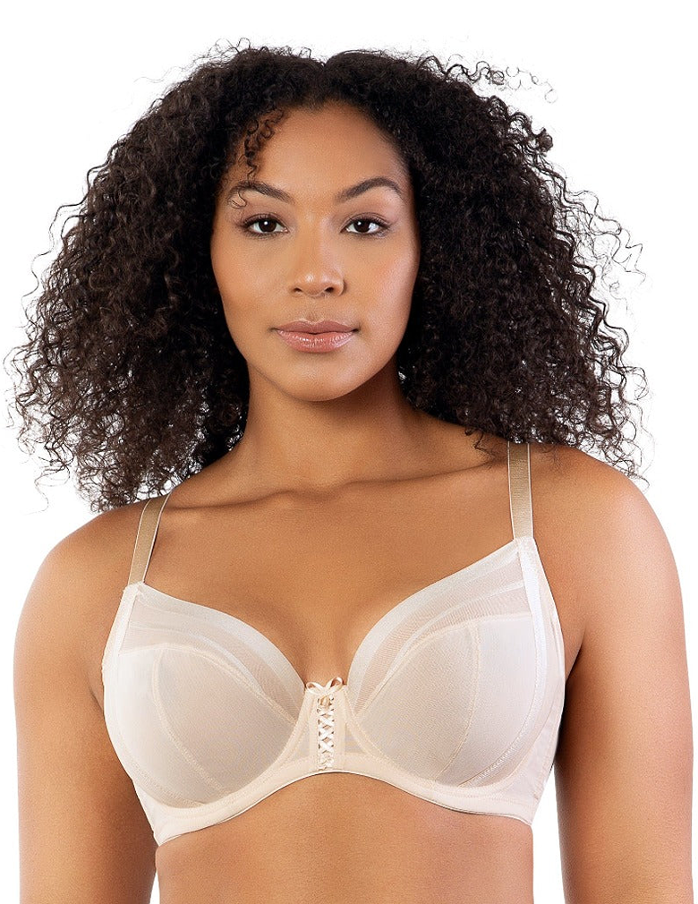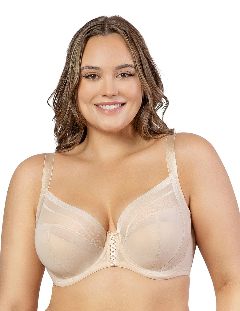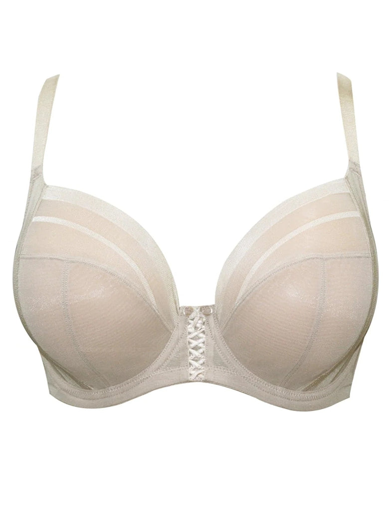 As soft and luxurious as shea butter, the Shea plunge bra’s sheer, breathable fabric in Bare conforms to your body like a second skin. The silhouette features a 3-part underwire cup with external and internal side slings for extra support. The comfort striped stretch mesh at the side, back and neckline provides ease of fit. A decorative lacing adorns the center front and accentuates the modern plunge neckline.
