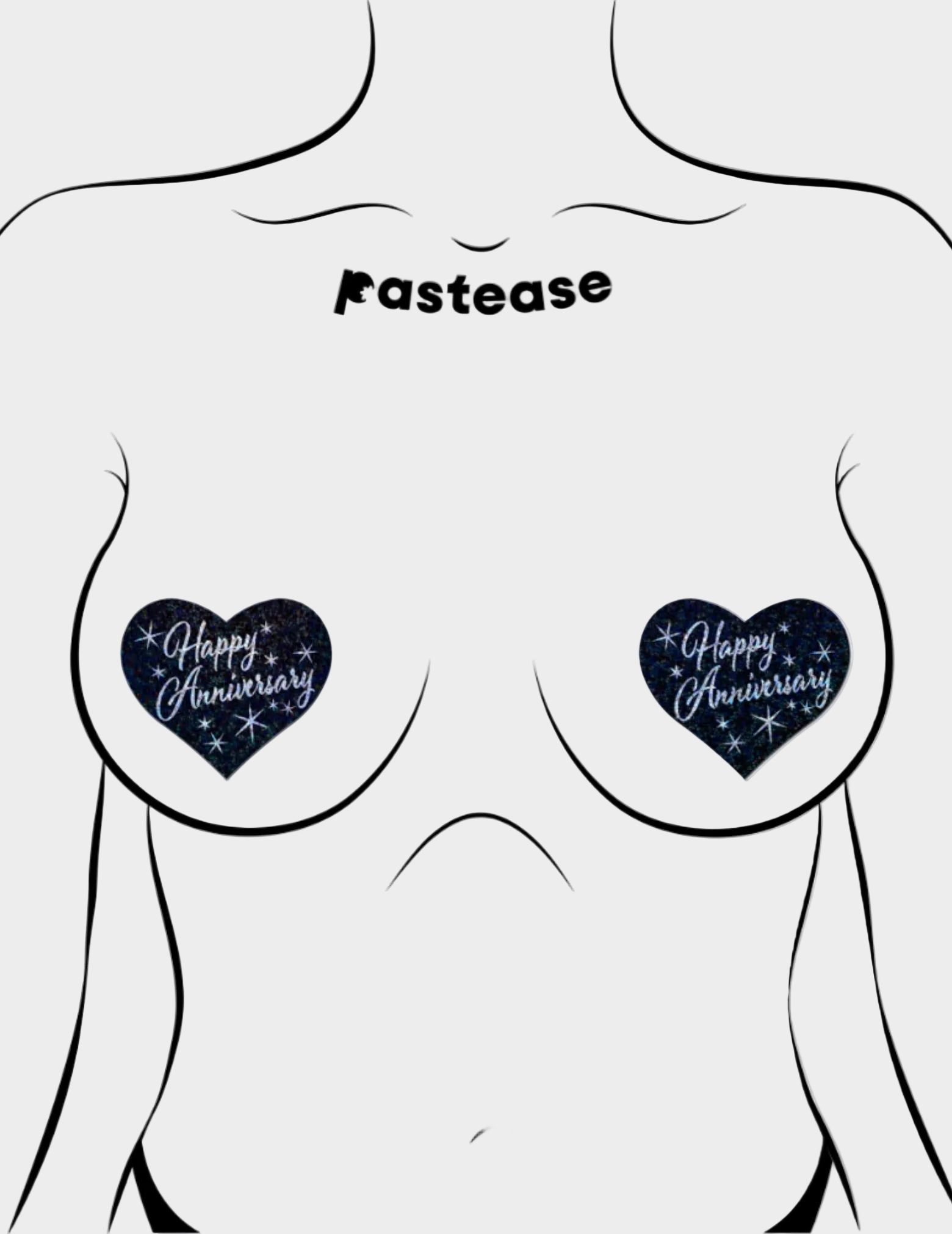 Love: 'Happy Anniversary' Heart Nipple Pasties by Pastease® are hand-made in the USA of soft form-fitting material that forms seamlessly to curves and resists wrinkling over hardening nipples.