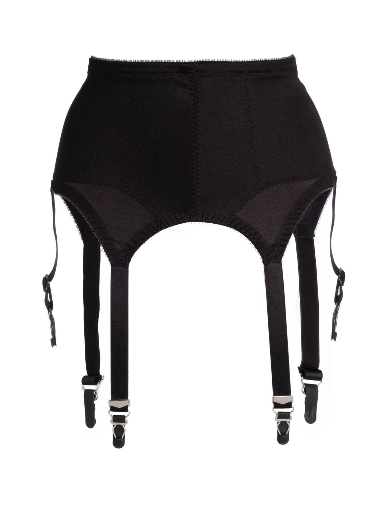 This six strap garter belt is made of exclusive silky smooth fabric made of 80% nylon, 20% Invista® Lycra® to stretch 2 ways. It features tummy control panels, inner liner, and flat sewn seams for comfort and fit.