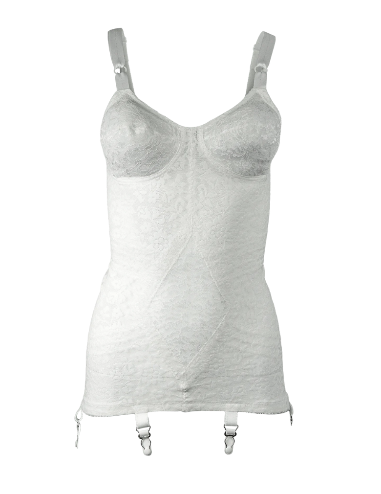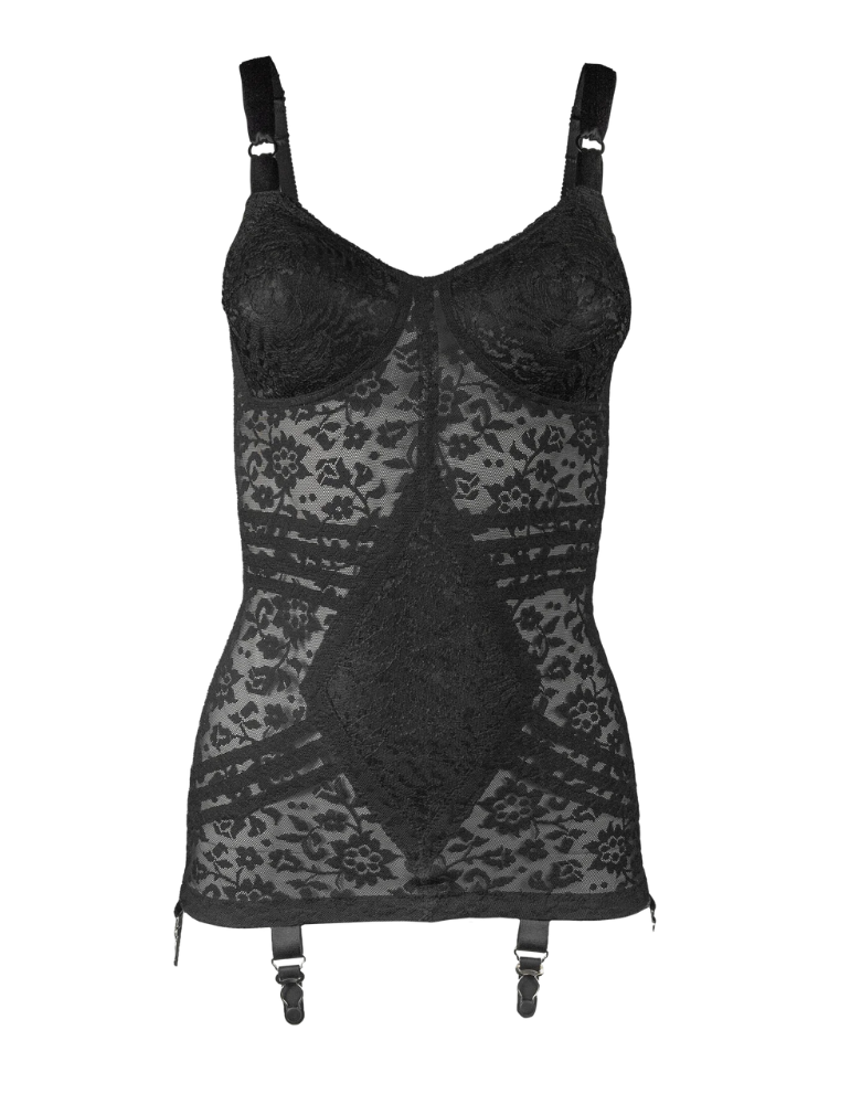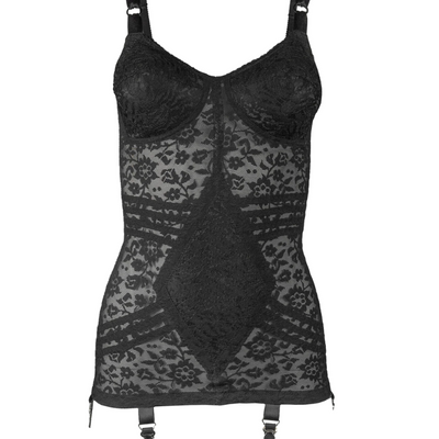 • Six metal garters are placed for perfect stocking control.