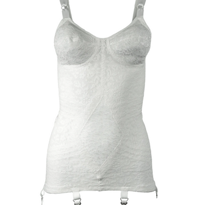 This lace body shaper briefer features power-net lace, exclusive contour bands, and metal garters for comfort and fit. This lacette jacquard knit fabric is made of 70% nylon, 30% Invista® Lycra® with two-way stretch in a special lace floral design.