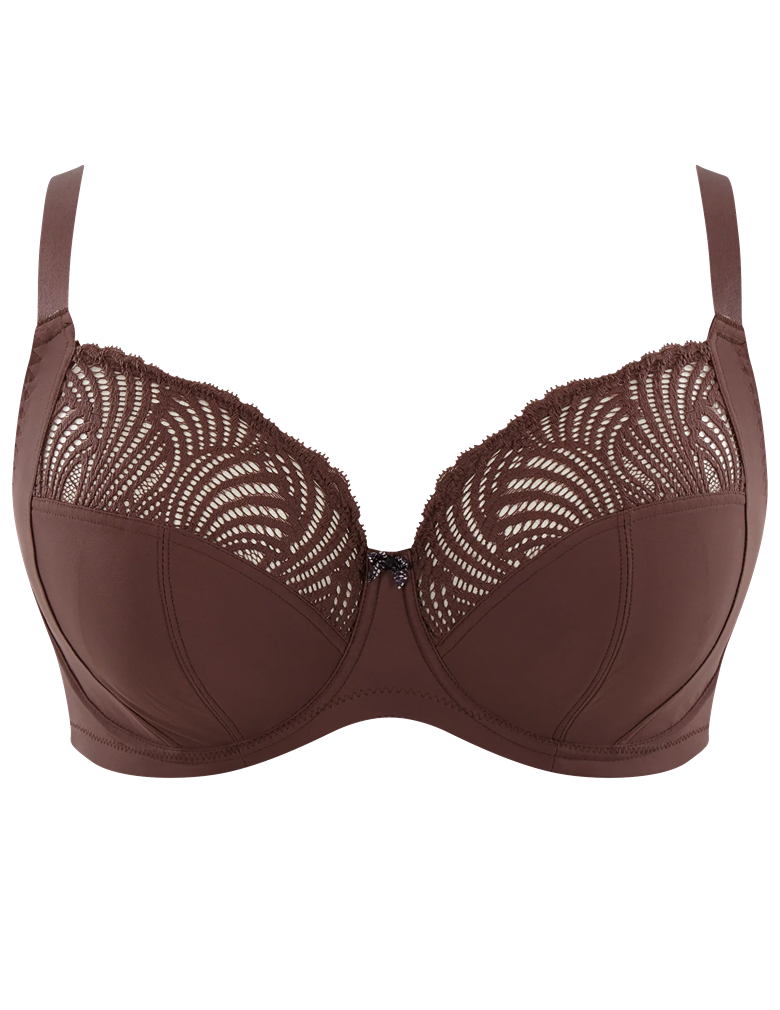 Arianna in Warm Chestnut is an on-trend full cup style that offers great support and uplift. The straps are more central, so if you find wide straps are uncomfortable, this is a great choice for you. The central straps also help to bring your bust together for a forward shape, and if you want a little extra lift and support, us the J-hook to convert the straps to a racerback style! With a stunning colour to brighten up your lingerie wardrobe and delicate ornate lace on the top cups, this new Sculptresse style is a must have.